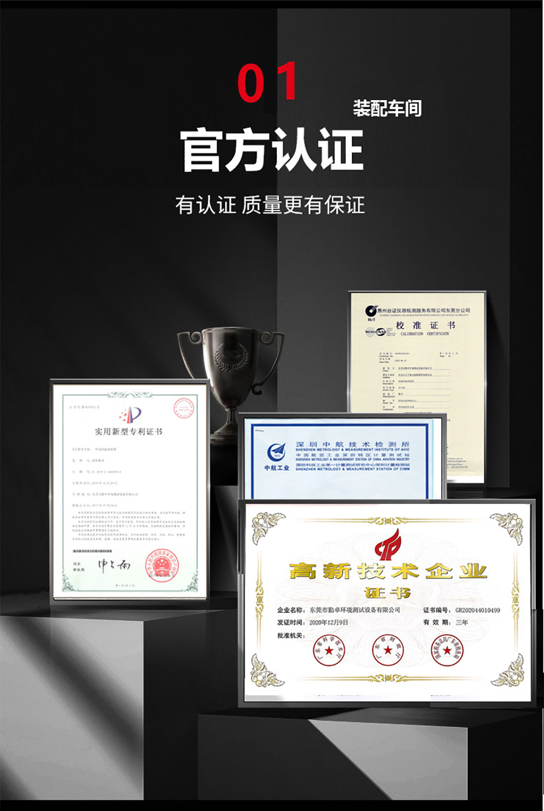 高低温试验箱:适用于工业产品高温、低温的可靠性试验。对电子电工、汽车摩托、航空航天、船舶兵器、高等院校、科研单位等相关产品的零部件及材料在高温、低温(交变)循环变化的情况下,检验其各项性能指标。